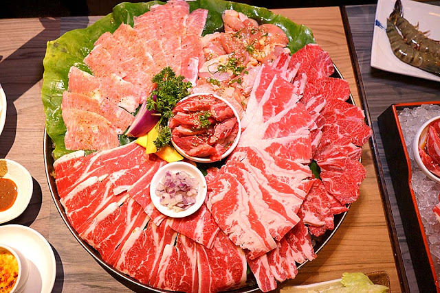 你知道深夜修圖寫這篇文章有多難熬嘛!距離上一次吃燒肉大概是去年吃屋馬的時候吧!想想怎麼會這麼久阿,印象中還是跟圖文插畫家不死兔他們去吃的,這次則因為【芭蕾城市渡假旅店】推一泊二食的關係,有機會一起來嚐鮮,而且聽說現在的菜單是改版過的,近期一共來兩次,其中一次吃到的就是上圖的燒肉盤!誇張!大的嚇死人!這是傳說中的風火輪嗎?