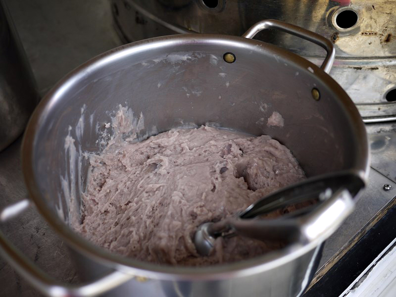 在紅豆伯開始製作時,主辦單位有交代我們不可以偷吃…阿伯有什麼需求要盡量幫他…