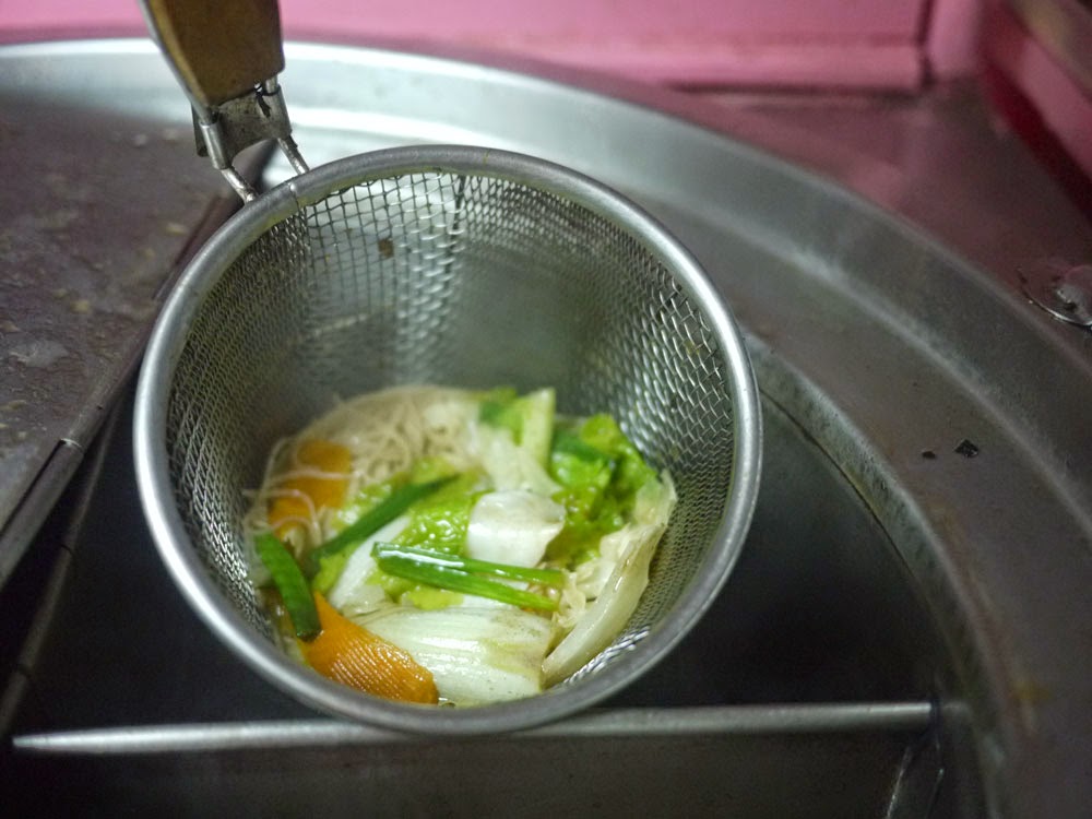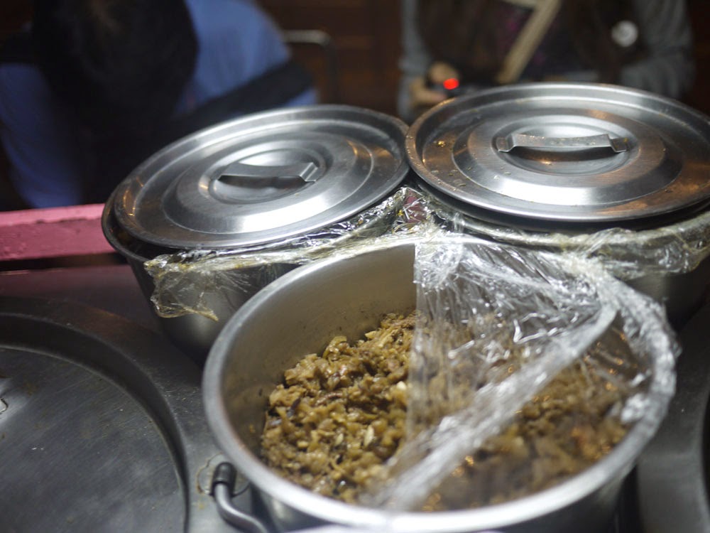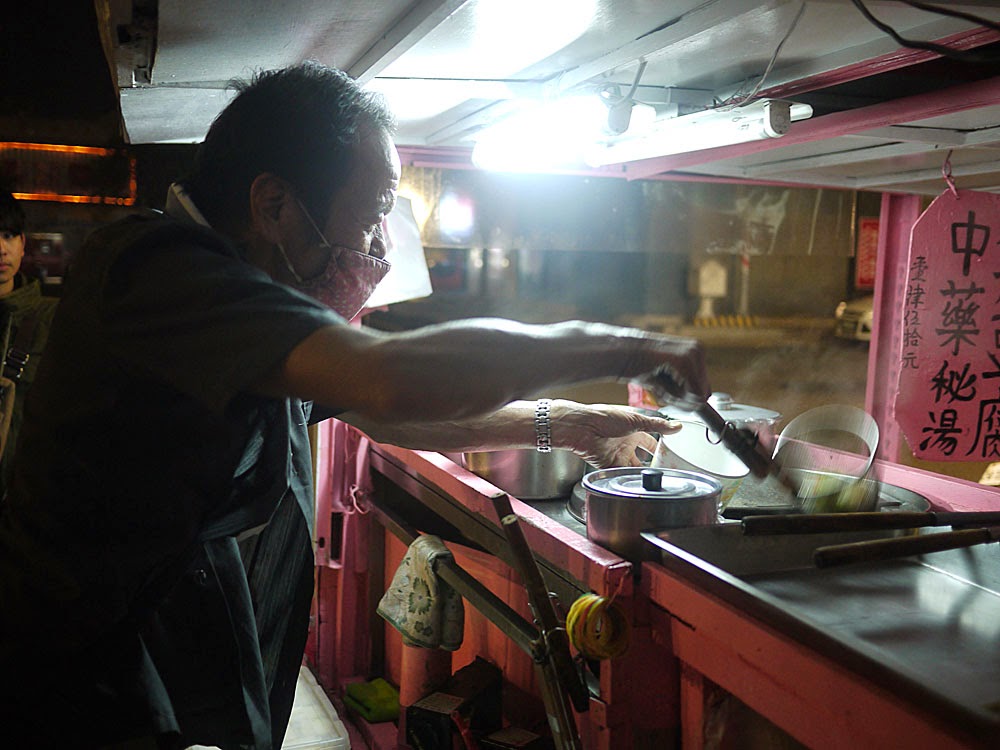 點了臭豆腐跟大腸麵線,不知道是因為深夜沒什麼人的關係嗎?老闆看到我們就一直想跟我們聊天,空檔時間才在弄麵,喂,這本末倒置了吧!