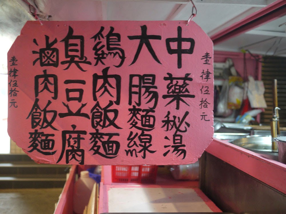 菜單如上,通通50元,有賣滷肉飯麵、臭豆腐、雞肉飯麵、大腸麵線與中藥秘湯。
