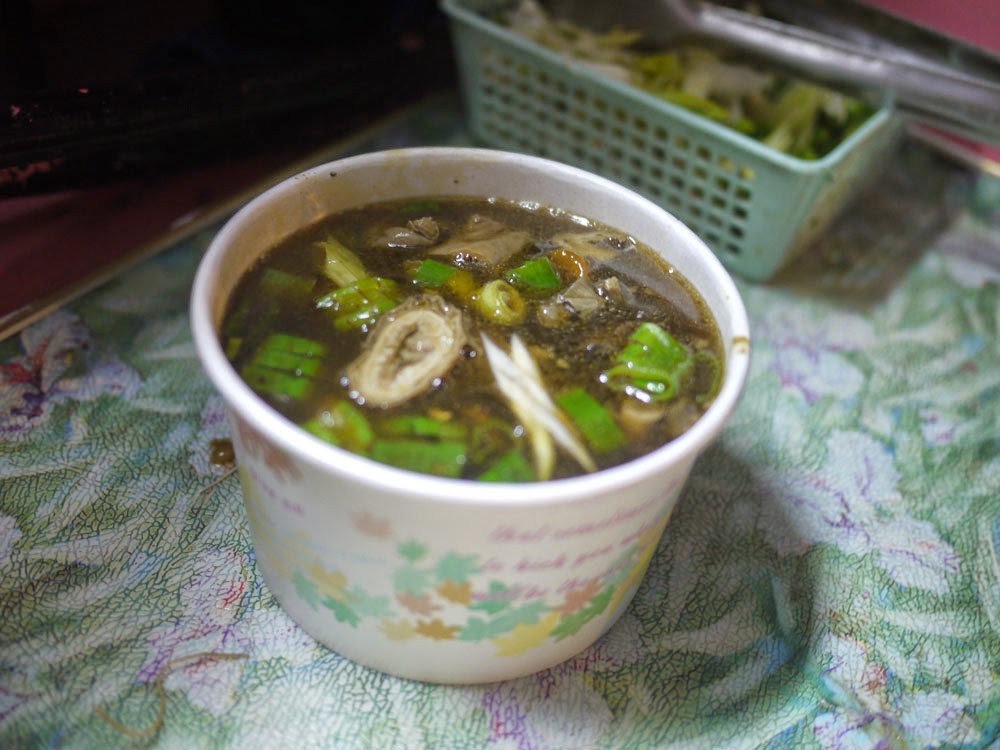 這家的麵線吸收了湯頭的味道,口感上比較重,有些中藥材的滋味,大腸我沒吃,不過因為放太久,為了看藍眼淚就把這碗麵線帶到成功海灘吃,後來水分都被麵線吸光了。