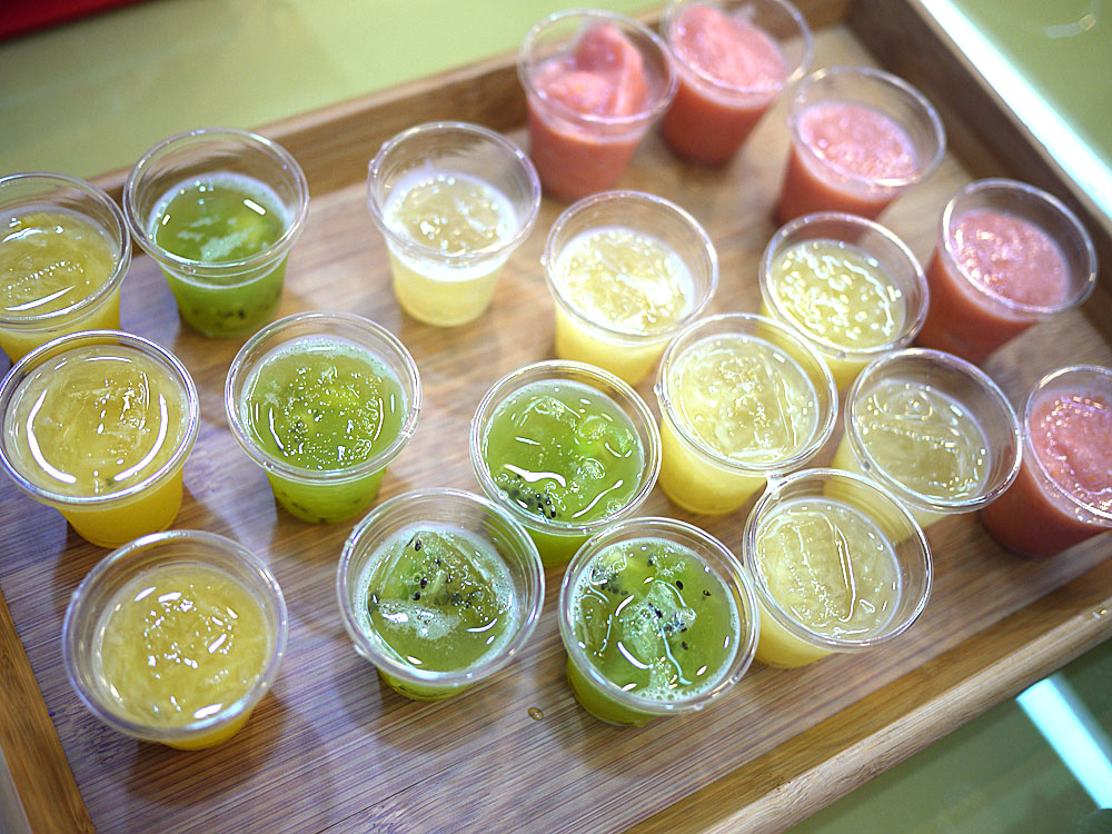 在那之前,我們先小嚐了一些試喝杯,一次品嚐多種不同口味的飲品。