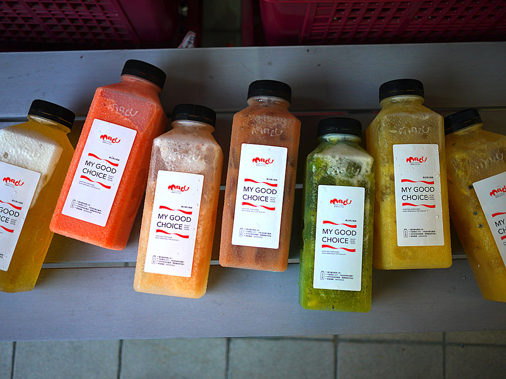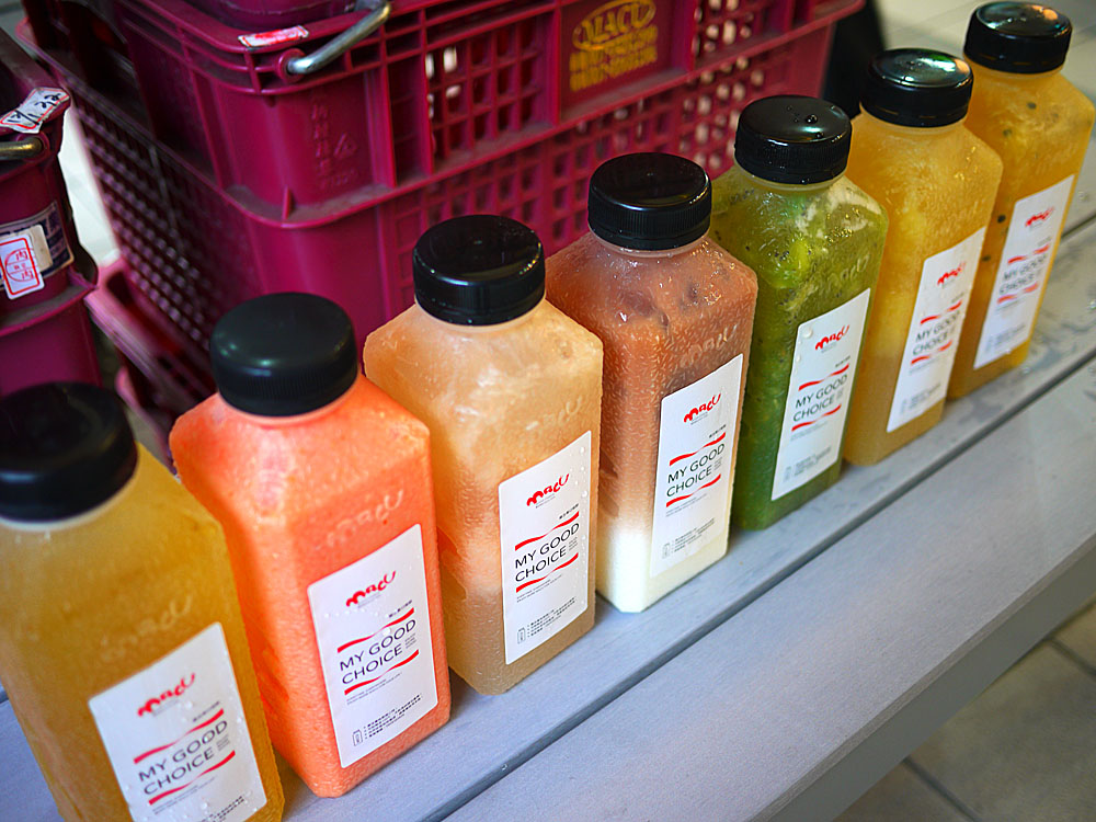 番茄、奇異果等等,通通都展現在顧客的眼前,果汁系列的商品也是店家的主打項目!