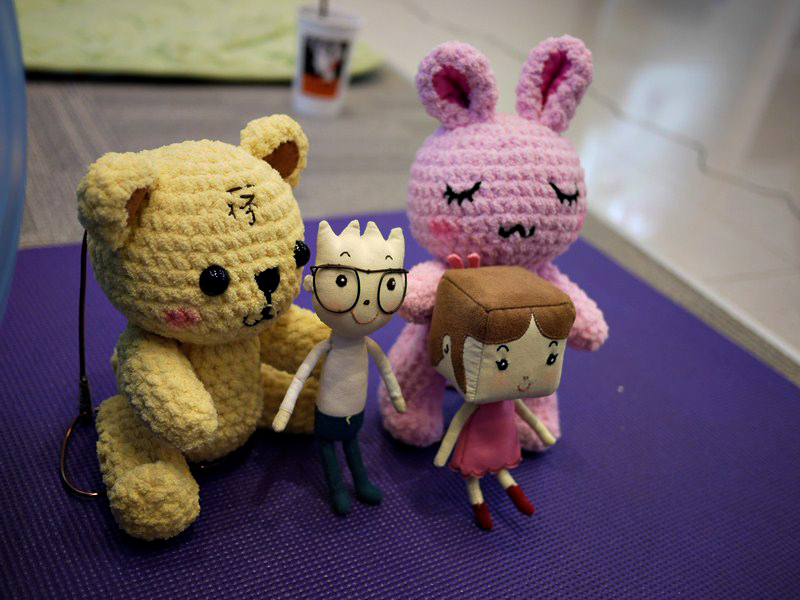 結果大妮超機車的啊!一直說人二站在熊痞痞旁邊,熊痞痞一整個是巨熊般的肥沃….好吧!我承認自己是有點胖,下次應該在做兩隻小尺寸的,外拍好像會方便些!
