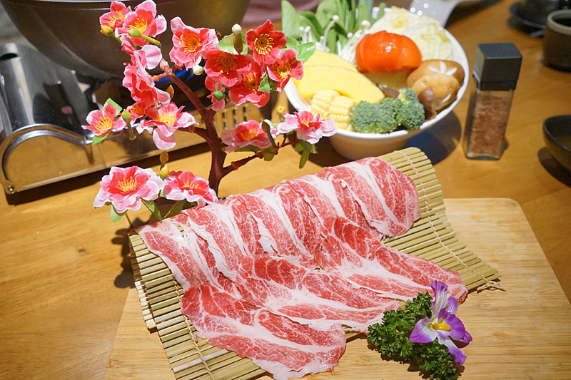 火鍋套餐和牛肉片,選用的是澳洲M9+和牛,呈現出來的畫面像是一幅藝術的圖。