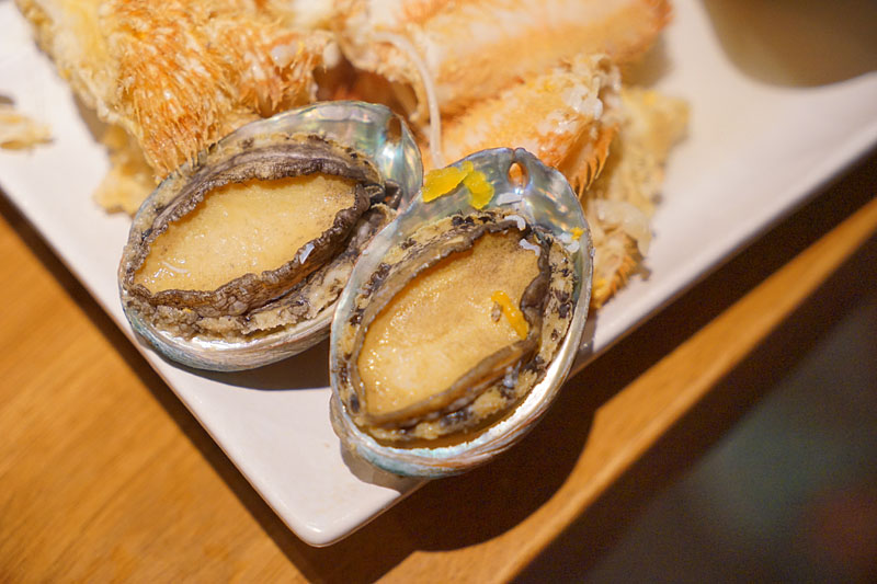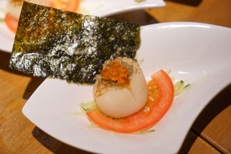 碳烤美國大干貝,這一道我沒吃,上面還有鮭魚卵與松葉蟹膏襯托,朋友說干貝肉吃起來很嫩,而且上面的佐料又讓入口的口感更有層次,是好吃的。
