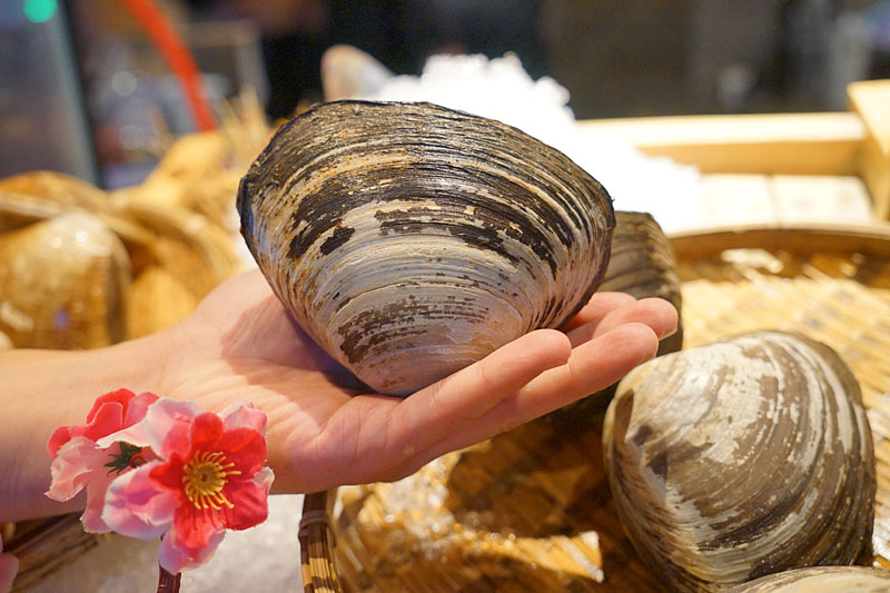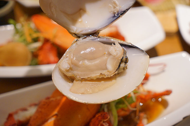超大的大蛤,飽滿的姿態十分誘人,仔細看跟後面的龍蝦敖相比真的不分上下呢!