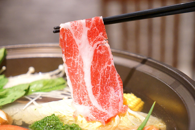 和牛煮到全熟就太浪費了,建議刷到3~5分熟,加入蔬菜再煮過的湯頭,更能提出牛肉的甜,入口後滿嘴牛肉甜香,我個人覺得其實吃原味就夠了,但如果是重口味的朋友,也能試試看金桔酸甜醬。