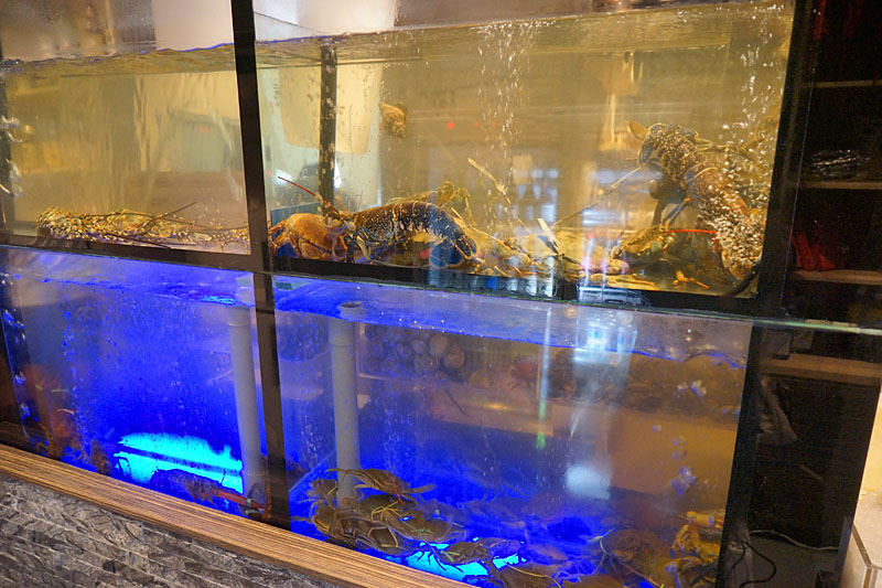 這邊的蟹與龍蝦都蠻有活力的在水缸中動來動去。