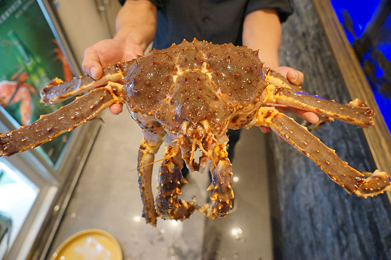 另外還有超大的帝王蟹,全部都是活體最新鮮的,有些高檔食材建議要提前預約,我原本想說會來這樣吃大餐的人應該很少吧?這些活體海鮮為什麼要準備那麼多呢?結果從進門到吃完離開時,竟然客滿耶…然後不少人都點毛蟹龍蝦等料理….原本一樓櫃台前面的海鮮也被掃空了,完全傻眼!
