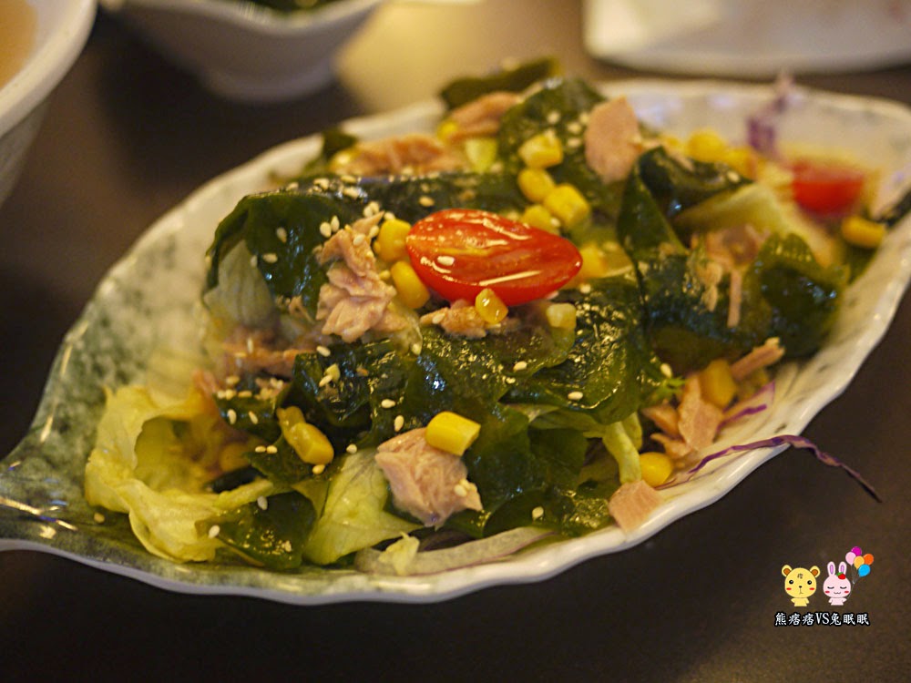 很豐富的組合,有海帶芽、小番茄、玉米、鮪魚等等,算是經濟實惠又可以先充實肚子的選項。