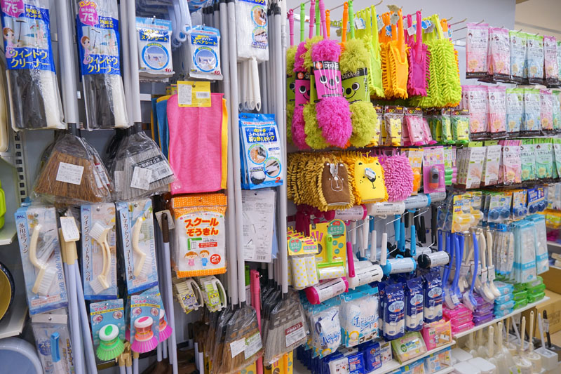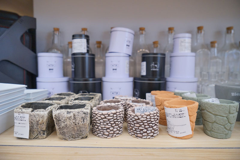 中間柱子處較多的是拍照或園藝用途的裝飾品小物等,另外一側則是除臭類的用品。