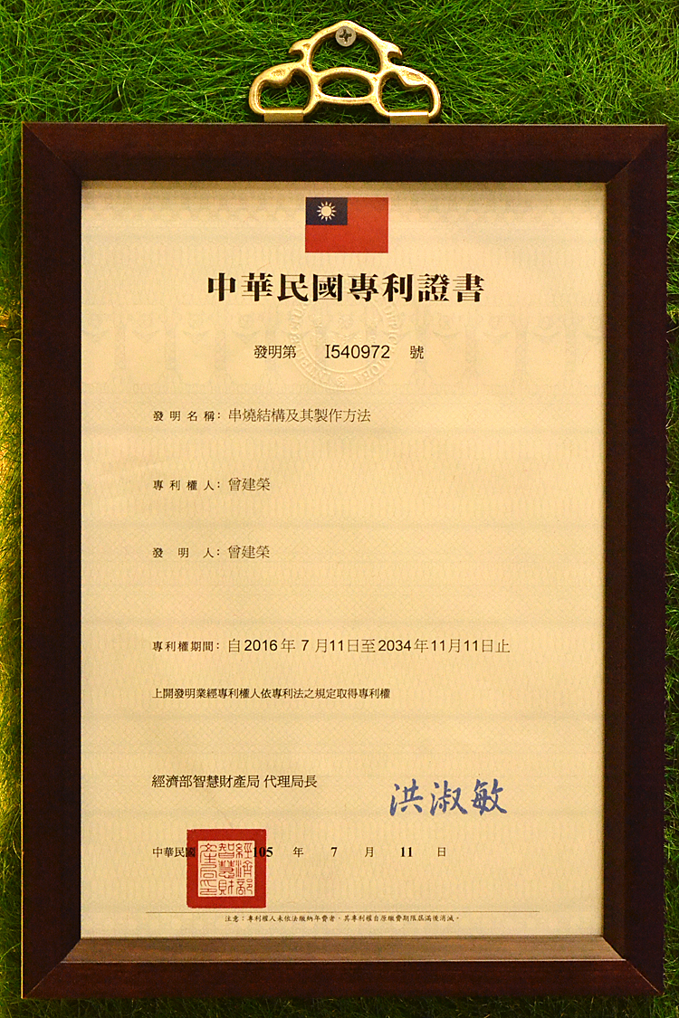 在台灣目前擁有燒烤專利的也只有激旨燒鳥!裡面的串燒結構及製作方法都是由這邊創始的,市面上有些相同結構的製作方式則屬於抄襲的。