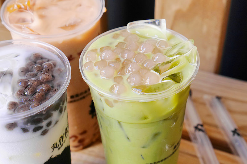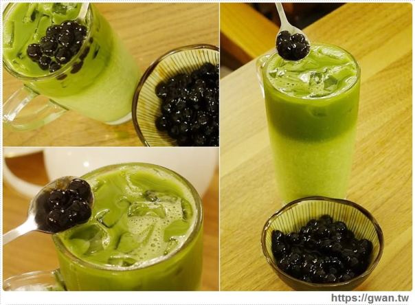珍珠會另外放一小碗自己加,一方面可以保持它的Q彈、也不會佔去飲料體積,它用黑糖先蜜過,本身已經有甜度,而且有淡淡的黑糖香,抹茶拿鐵送上來是漂亮的漸層色,但你直接喝會有苦澀味,把它跟底下的牛奶攪拌均勻就變得順口好喝了。
