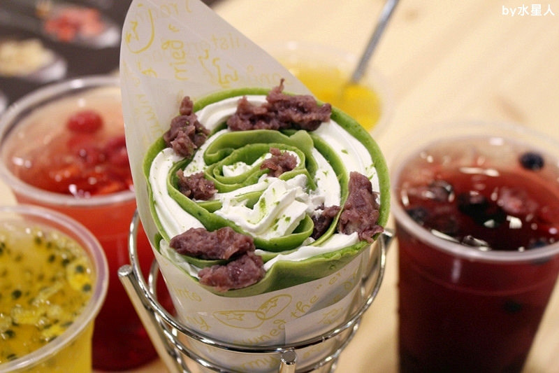 濃綠的餅皮,好抹茶,聞起來有濃郁的抹茶香,口中縈繞著滿滿的茶味。軟中有Q度的口感,擠上大量的鮮奶油,若有似無、清爽柔滑,紅豆泥綿密香甜,單純簡單的抹茶紅豆組合。
