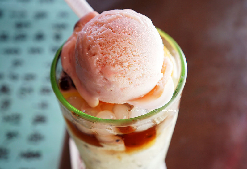 這是在之前「梨好」小攤位時就有的漂浮鳳梨冰系列,就是鳳梨冰上再加一球冰淇淋,洛神花是霸子我很喜歡的口味,吃起來比較酸而且裡面還會有果肉,吃起來很有感覺。