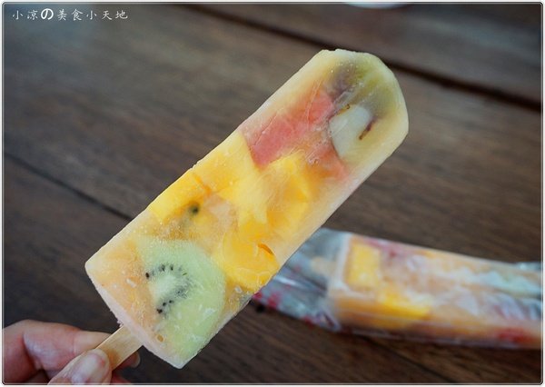 冰冰涼涼的水果枝仔冰,讓我吃的透沁涼,那奇異果肉的酸更是將甜給綜合了,一整支吃完也不會讓人覺得很甜膩,跟一般外面賣的枝仔冰有差。