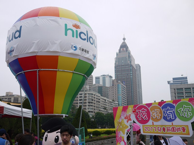小朋友跟一些海綿寶寶、中華電信寶寶、兒盟寶寶大合照。