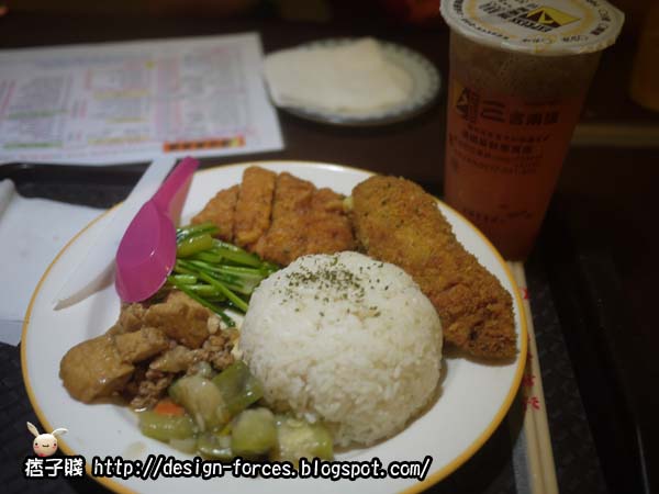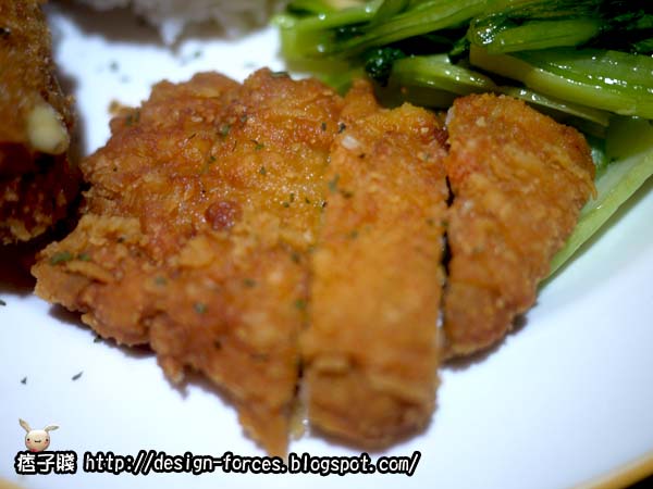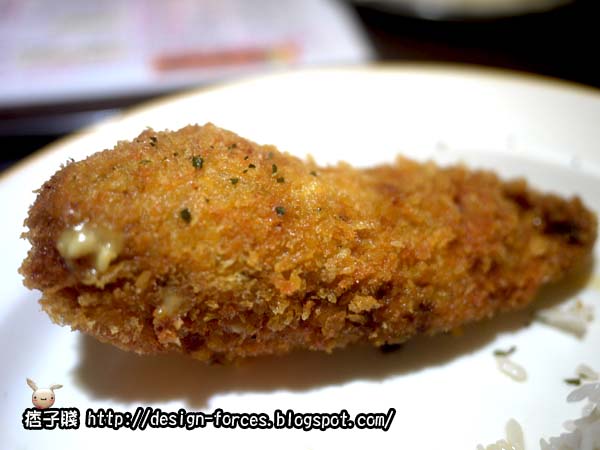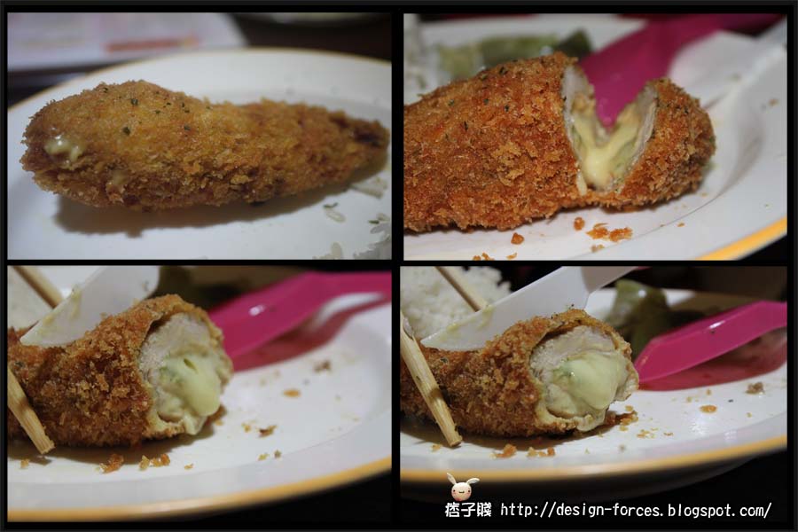 波士頓爆漿雞排飯(起司味)真的很特別,雞排是用捲起來包起司炸的(可能是賤賤第一次看到比較大驚小怪!),皮炸得很酥,肉很嫩,很好吃,但卻感受不到起司味,這是吃下後覺得美中不足的地方,兩者搭配起來的味道並沒有融入在一起,帶有些隔離感,很可惜!