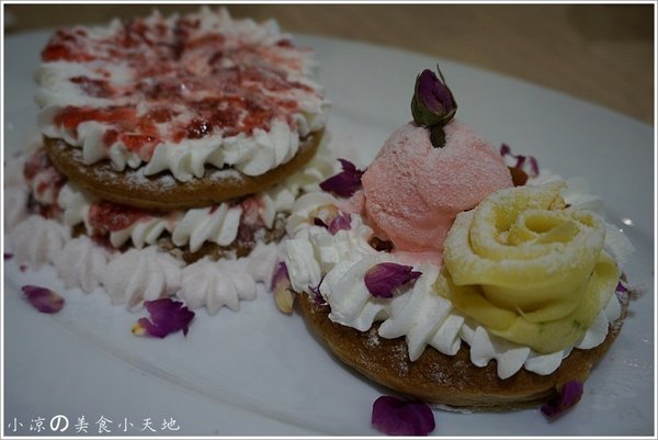 這款玫瑰夫人鬆餅,多了淡淡的玫瑰香氣,加上鬆餅內也有添加了玫瑰,所以在濕潤度上比較飽足些,鬆餅扎實的口感搭上鮮奶油一起享用,可是會讓人有飽足感唷!!