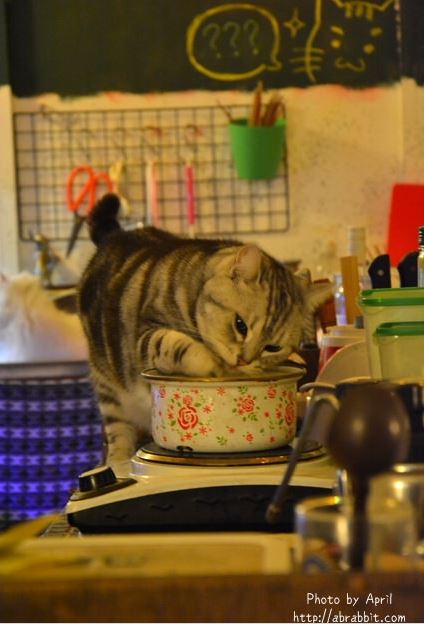 附上一張小喵喝水的可愛模樣,牠竟然用手來撥水喝,模樣超逗趣的,忍不住對著牠一直拍照。這天來用餐,吃完這頓飯的感想,就是餐點真的蠻好吃的,這裡沒有華麗的裝潢,但是有溫馨深夜食堂的FU,不過座位真的不多,而且老實說,席地而坐的位子,腳實在很難伸直。