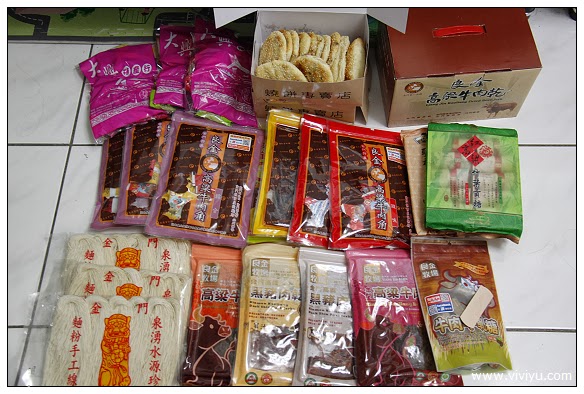 來看看我此行金門三天二夜的戰利品,又擺滿了整地,佔了大多數的就是牛肉乾,因為親友們特愛金門的牛肉乾呀!