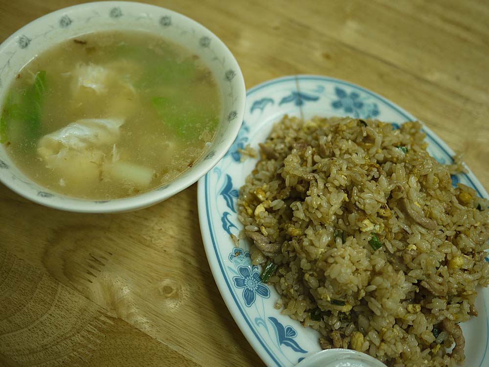 牛肉炒飯跟肉絲炒飯是我常點的,也可以加10元白飯,偶爾會再點一下20元的蛋花湯。