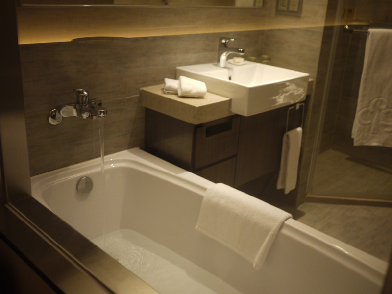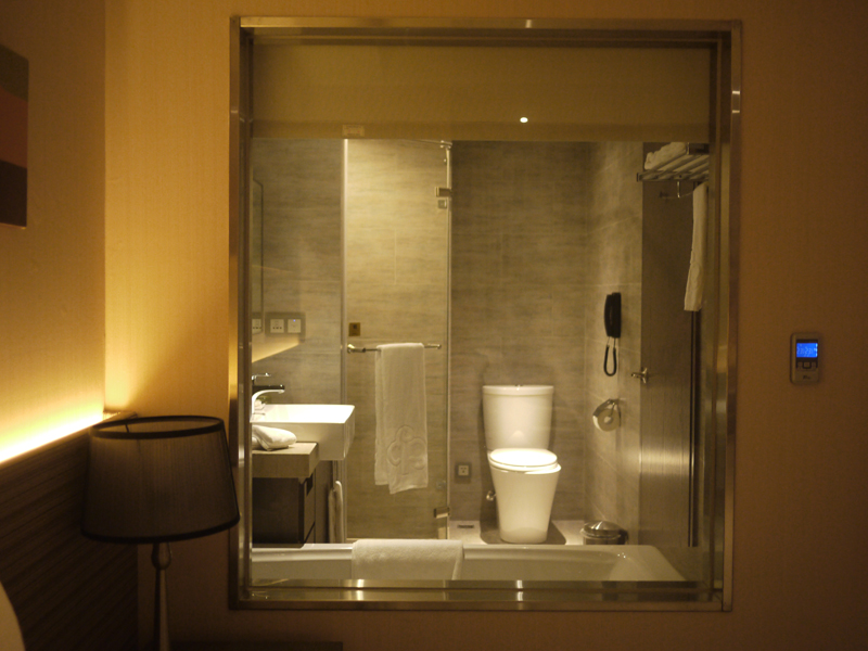 洗完澡後,就可以在浴缸泡澡,將一整天疲倦的心靈好好放鬆一下,當然,如果是非情侶一起住到這間時,別擔心透明窗會曝光,裡面有設置小窗簾可以拉,以免春光外洩囉XD。