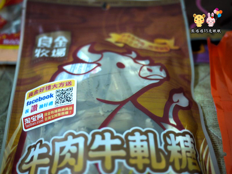 有看到包裝上所寫的文宣嗎?很直白的標明裡面有加入牛肉乾!一開始看了好幾回,我都直接跳過這包,因為覺得這個牛肉牛軋糖看起來就很詭異!開玩笑,牛肉口味耶!吃起來應該很怪吧?