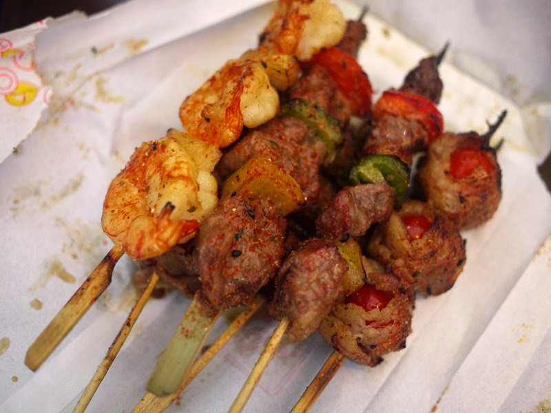 目前我所走的路線,大多是在大家少逛的外圍圈,那邊其實還有很多特別的小吃,包含包糯米腸的串燒、烤炸雞、蔬菜麵等等~