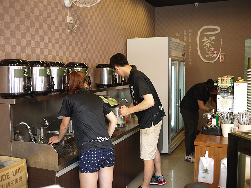 大家點完餐後,工作人員就開始進行飲料製作,是說他們上班穿的也很清涼耶。