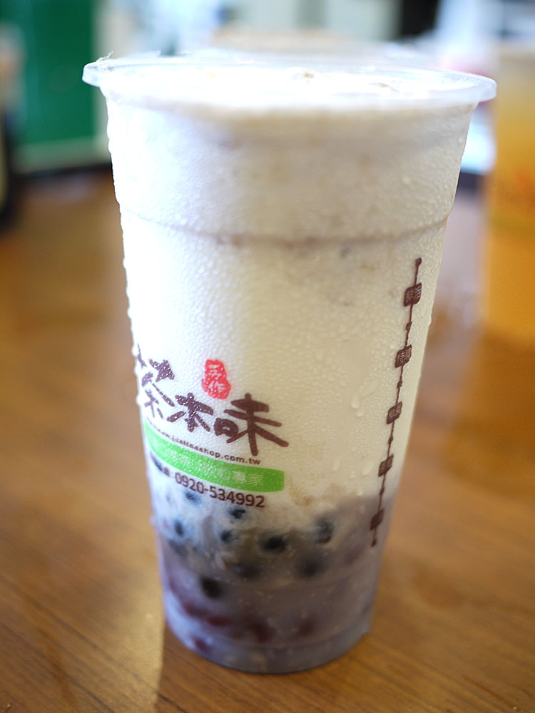 點頭奶茶,是我幾年前喝到現在仍喜歡的一款,大甲芋泥雖然看起來紮實,但其實不需要攪拌,只要直接將吸管插進去即可,芋頭好綿跟紅豆百搭,因為芋頭本身有些甜的關係,建議點到半糖以下會比較好。