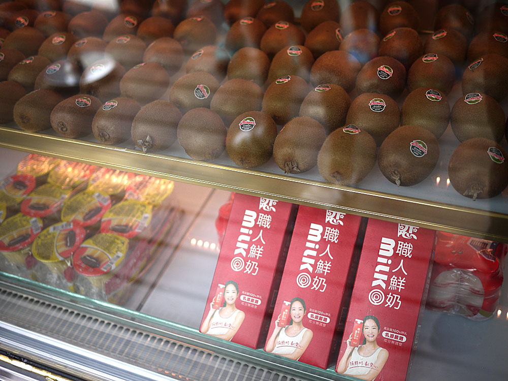 櫥窗上,擺滿了目前季節再推的水果以及他們使用的鮮奶品牌,用的是職人鮮奶。