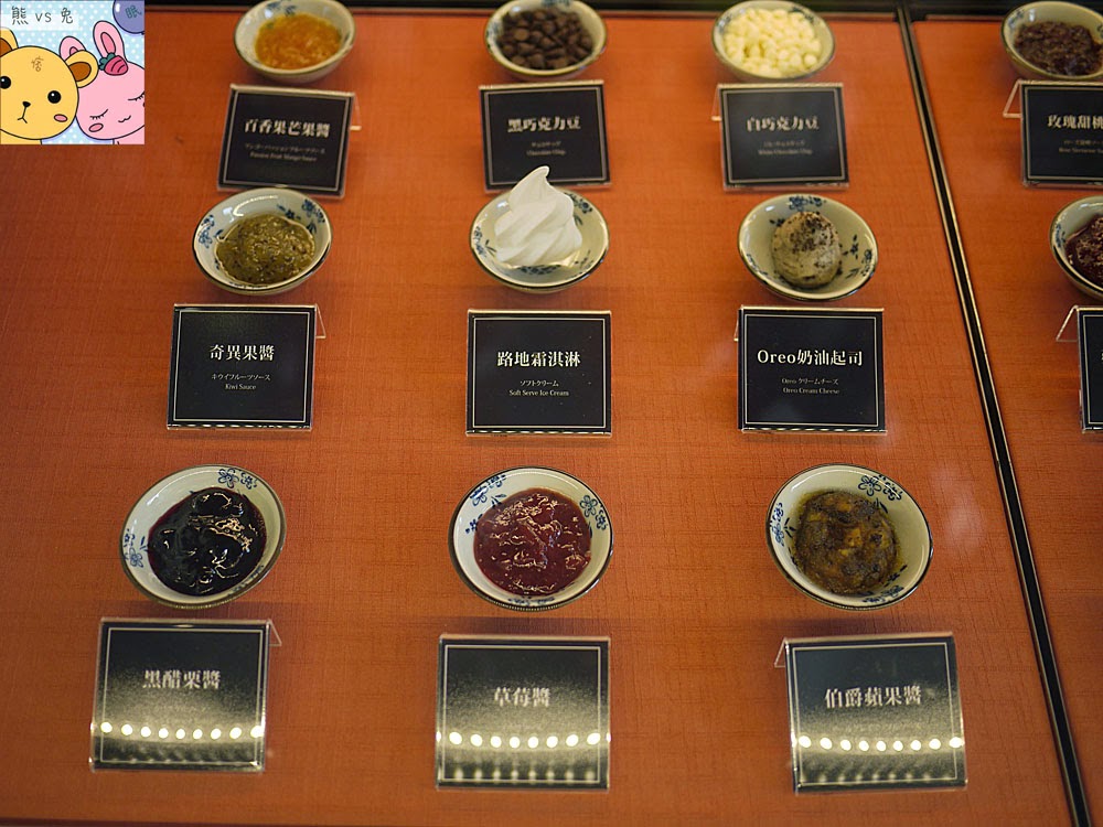 氷の怪物,一份200元,可以先挑選口味再選擇兩種配料,最後須等候一段時間後,東西才會送上來,口味目前有路地特選鮮乳、宇治抹茶、法國可可、黑芝麻與紫蘇梅五種。