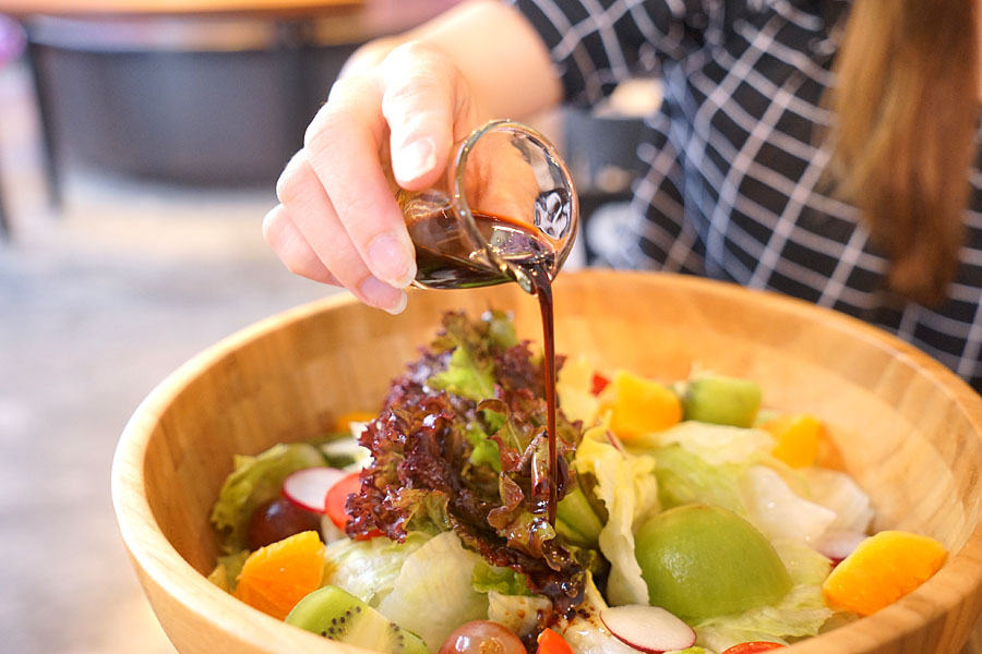 綠野仙蹤的鮮蔬果,滿大一盆的沙拉,當天看很多來拍照的女生都點這份,淋醬部分有日式胡麻醬跟法式凱薩醬可以搭配,裡面除了蔬菜外,水果也很多唷!輕鬆簡單沒負擔。