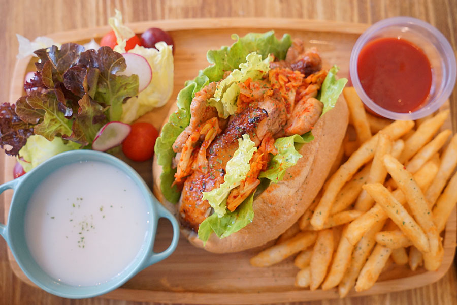 深海潛艇堡韓風泡菜雙拼,專為不吃牛肉的朋友而設計的,採用勁辣雞與豬肉厚片的混搭,搭配上生菜與泡菜,吃起來有些清爽,又有些酸酸辣辣的,很有層次感。