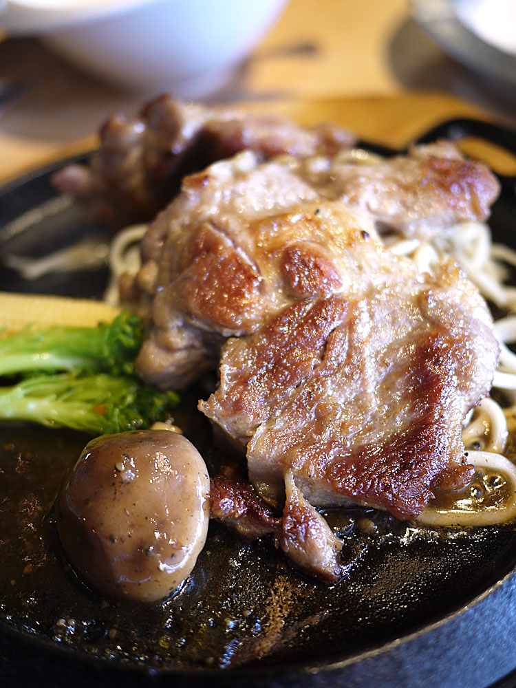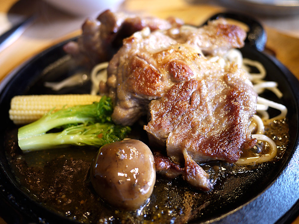 首先要介紹的是特製豬排,雖然這是一家以牛排為主軸的餐廳,但也考慮到有些能不吃牛的關係,額外提供幾種像是雞腿、香煎鱈魚排等給大家選擇,