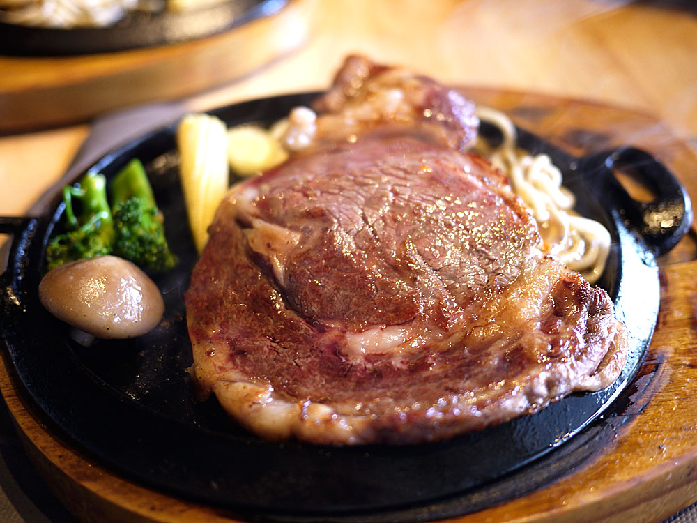 這是頂級肋眼牛排10oz,店家建議七分熟我們就跟著點了,一上桌還蠻壯觀的,整塊牛排都快滿出盤子。