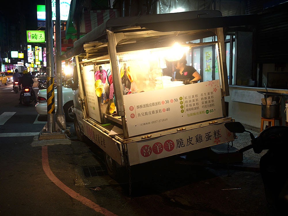 一個掛著塑膠拖鞋的行動車攤販,一位個性開朗的老闆娘,這裡所賣的不單單只是一份雞蛋糕,更是一種屬於街坊的人情味,從921大地震開始營業的她,邊賣邊進修,還把這裡當成培訓女兒自主學習的場所,有意思,這家喜羊羊脆皮蛋糕真的有意思。