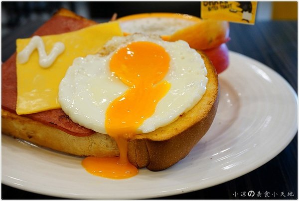 蜂蜜火腿+黃金視好蛋+乳酪+丹麥吐司,蛋的品質是很不錯的,跟《NY BAGELS》用的是一樣的蛋,水波蛋一搓蛋黃就會流下來,再沾著起司一起吃,口感很濃郁… 不過因為麵包配的是丹麥吐司奶香味比較重,上面又有乳酪,吃起來整個感覺太rich了。