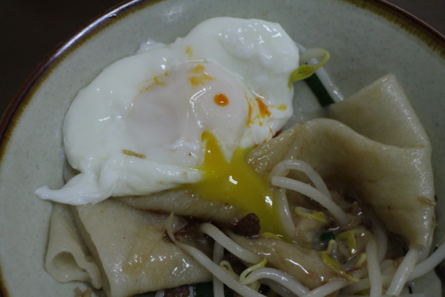 有明顯的牛肉香,加上甜甜的醬汁與焦香甜味的洋蔥真的很不錯吃,他們的蛋用的是「藻好蛋」是比較有品質的蛋,拌入飯吃還蠻讚的,所以後來我們有單點一份以豬肉為底的「月見燒肉」~