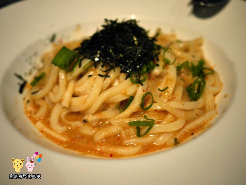 這式辣味明太子麵,底上的湯汁看起來有些辣,可是實際吃起來還好,麵條QQ的。