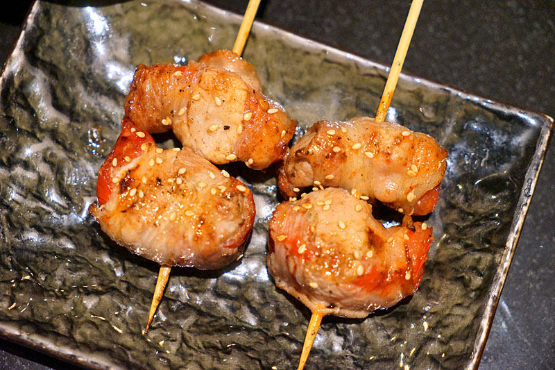 海老豚,是用培根捲搭配蝦仁與高麗菜串再一起,吃起來很爽脆,簡單的調味卻讓人覺得層次鮮明。