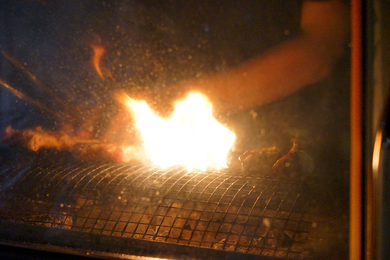 廚房是開放式的空間,都可以看到廚師料理的過程,環境乾淨,廚師們也都會帶著口罩,而且仔細一看,這邊串燒都是用炭火下去烤的,多了炭香味,也比瓦斯爐做的還要香。