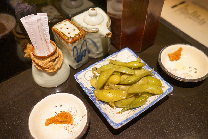 一開始會先送上招待的毛豆與蒜蓉味噌醬,沾醬可自己搭配組合其他的調味。
