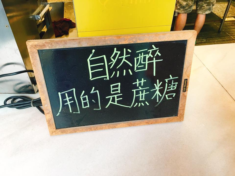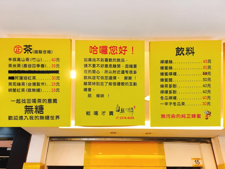 但我覺得比較酷的是,第一次看到別人看板中寫上!如果找不到喜歡的飲品,請不要不好意思離開,因錢要花的開心,附近還有很多飲料店供您選擇!說真的飲料店真的很多,這邊賣的品項比較少,也建議大家喝茶喝無糖的,訴求健康路線。