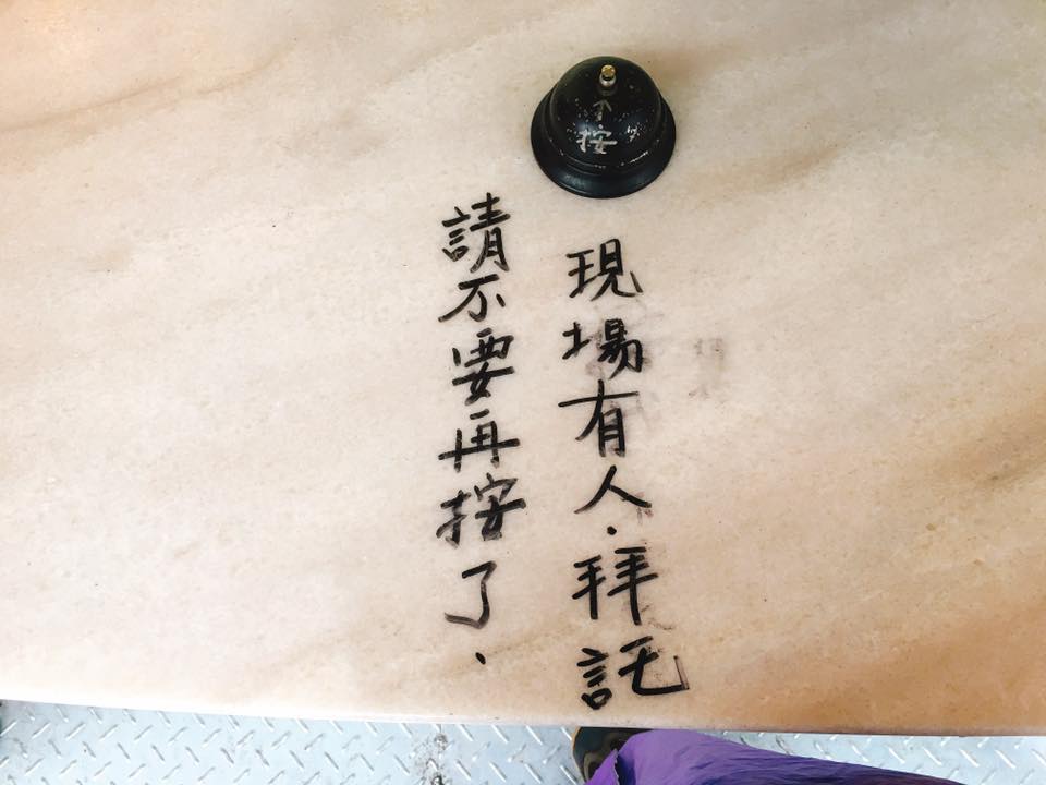 所以很特別的設定了按鈴,如果看不到人就按一下吧!但若老闆在前面,千萬不要去玩它!雖然我都覺得聲音超小的,老闆耳朵卻很靈光,一下子就冒出來了。