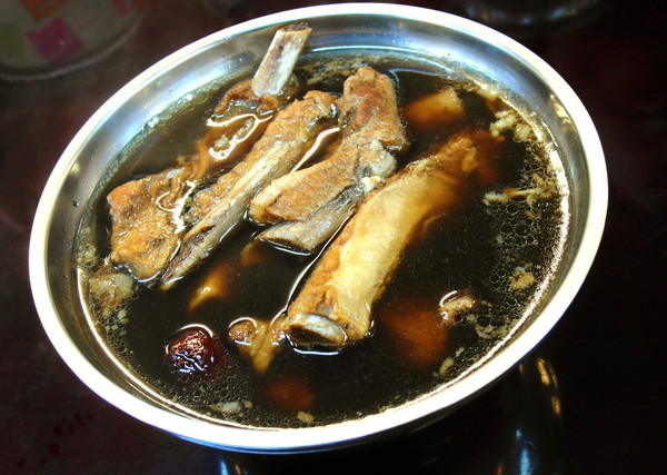 而每一根排骨上其實肉不算『非常多』.. 但都有帶瘦肉跟軟骨..所以吃起來還挺有味道的.. 而藥燉湯頭的部份沒有濃重的藥苦味.. 反而是有舒服的甘醇味..但還是有中藥香.. 不過我是覺得稍稍的油一些..但還是挺好喝.. 這個價格不算便宜..但至少有它的特色..