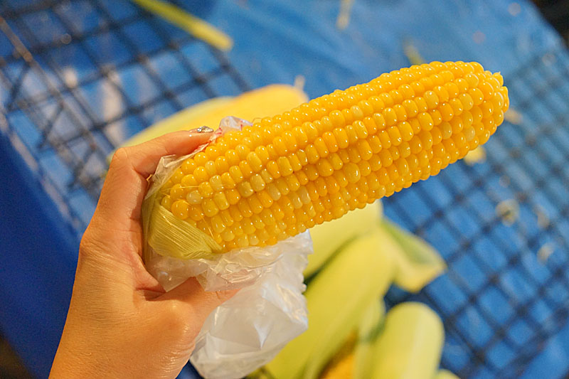只是買好後,熱騰騰的玉米就直接放在塑膠袋中,有些人可能會有些顧慮。