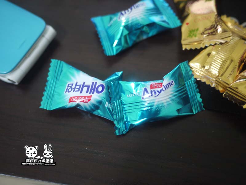 最近因為兔眠眠的同事跑去韓國玩,回國時還帶了一些韓國的糖果給兔眠眠,由於呆兔眠比較不愛吃甜食,最後就把來自韓國的AnyTime糖果都拿給熊吃,據說這家AnyTime糖果很有名氣,許多人從韓國回來都會帶上幾包!呵呵~託兔眠福!熊真是太幸運了。